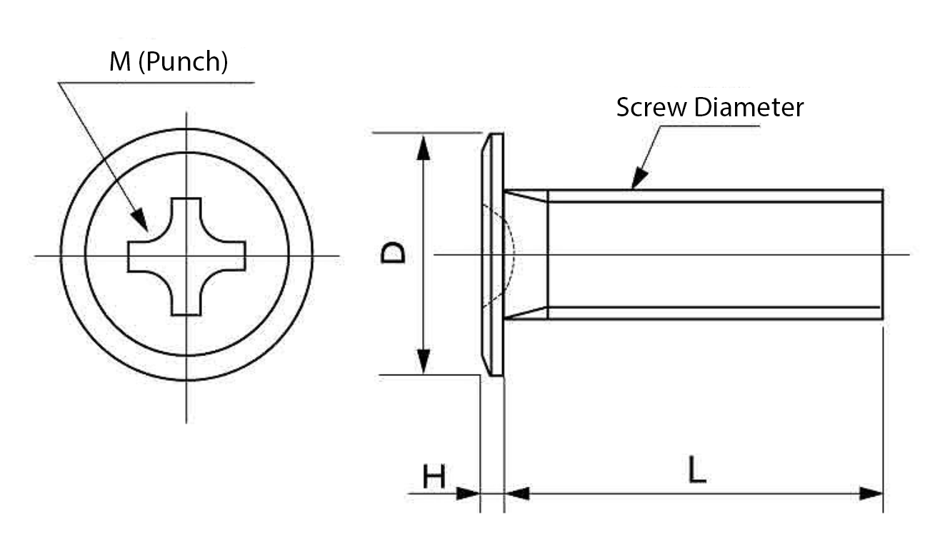 | Screw Designation (d) | Standard Dimension (D) | Standard Dimension (H) | Cross Hole Number | ||