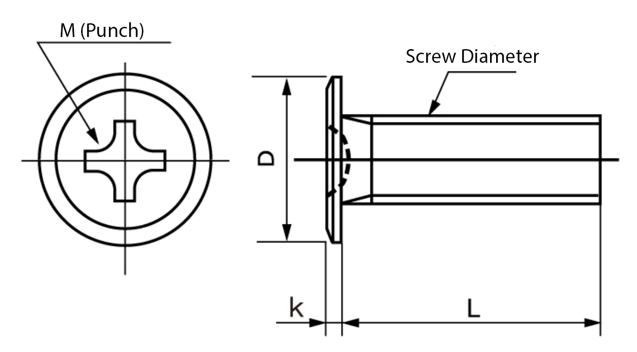 | Screw Designation | Cross Hole Number (M) | Standard Dimension (D) | Standard Dimension (k) | ||