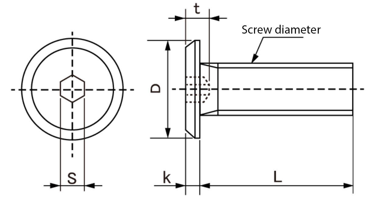 Screw Designation (d)Standard Dimension (D)Standard Dimension (k)St (MAX)
