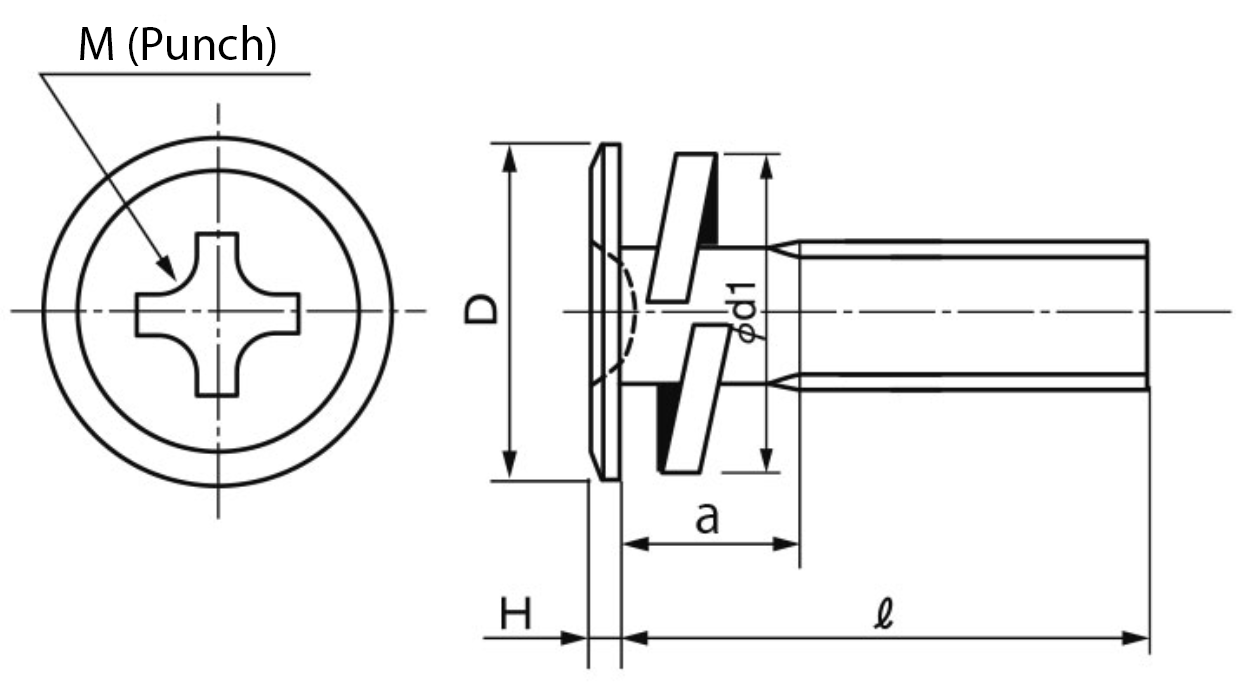 | Thread Nominal | Phillips Recess No. | D | H | d1 | a | Minimum Clamping Plate Thickness | ||