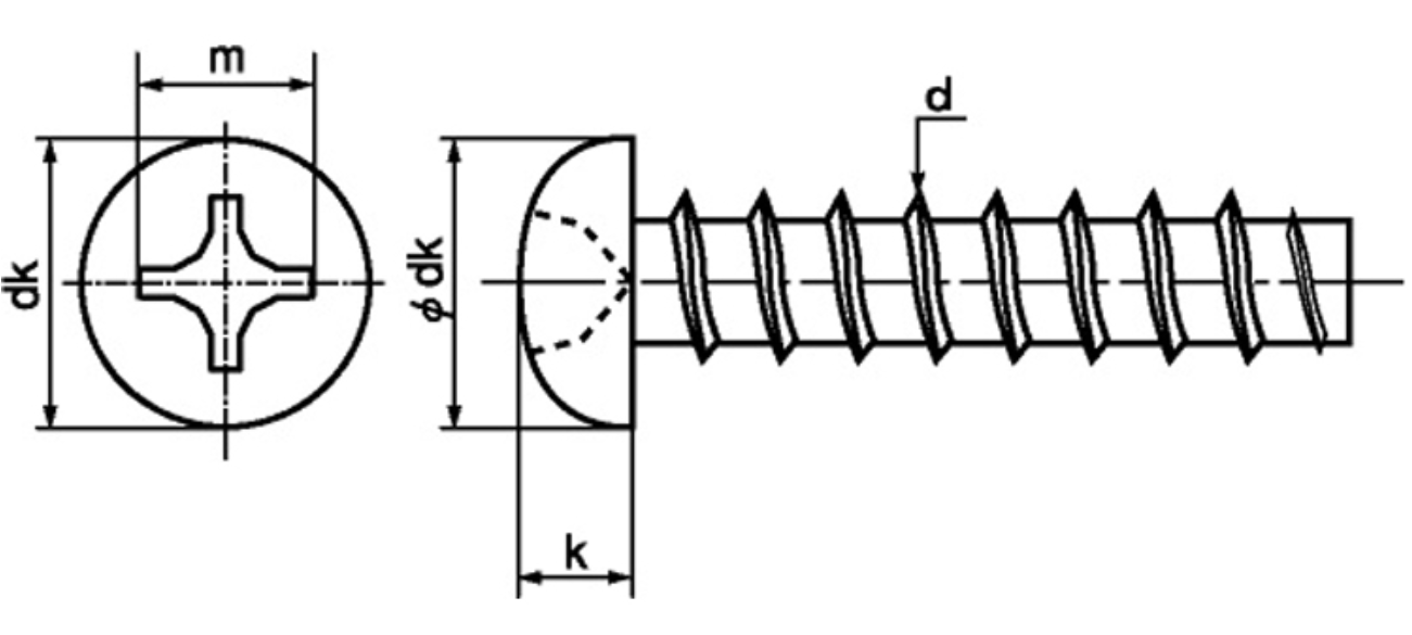 | Screw Designation (d) | Number of Threads per 25.4mm | Cross Hole Number (m) | Head Diameter (dk) | Head Height (k) |