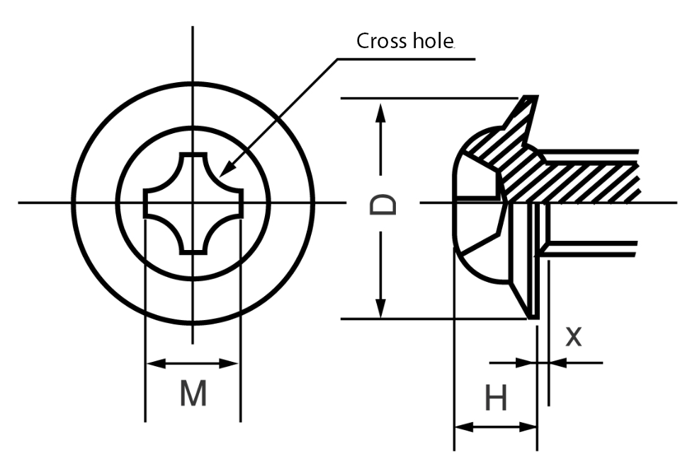 | Screw Designation (d) | Cross Hole Number | Flange Outer Diameter (D) | Head Height (H) | Cross Hole (M) | Gauge Sink Depth (Q) | ||||