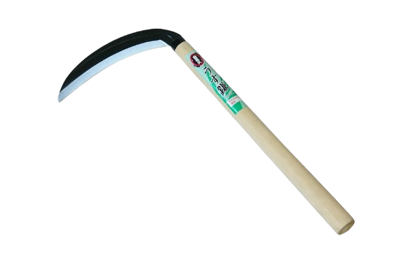 A thin steel sickle with a 195mm blade, designed for cutting soft grass.