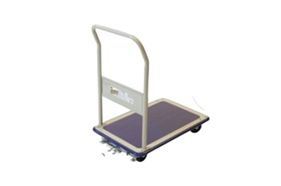 A steel trolley with a fixed handle. Ideal for transporting goods in factories, warehouses, and retail stores. Features a foot-pedal brake.
