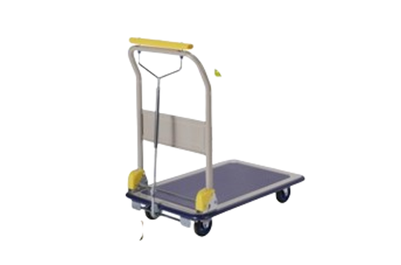 A steel trolley with a fixed handle. Ideal for use in factories, warehouses, and retail stores for transportation and transport tasks.