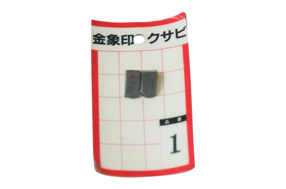 A wedge with diagonal mesh-like grooves on the surface to prevent it from coming loose.. Please use this with a hammer.