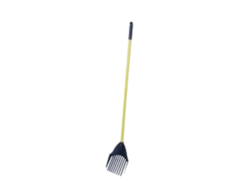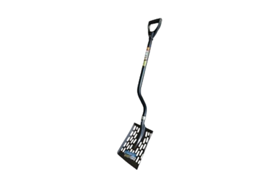 – The head (scooping part) is made of carbon steel plate and has undergone heat treatment of hardening (increases strength and wear resistance) and tempering (increases elasticity), and is also lightweight due to perforation.