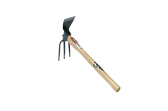 Moreover, the handle is crafted from carefully selected oak wood, providing a sturdy and comfortable grip for easy use. This tool is highly versatile, as it can be used in two ways: either as a three-pronged hoe or as a flat hoe, allowing you to tackle a variety of cultivation tasks with ease.