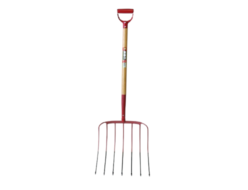 The head (claw portion) is made in one piece (welded-free integrated processing) and uses carbon steel equivalent to S70C, undergoing heat treatment of hardening (increases strength and wear resistance) and tempering (increases elasticity). The handle portion of the pipe is grooved to provide a non-slip function and a comfortable fit. Five-prong type.