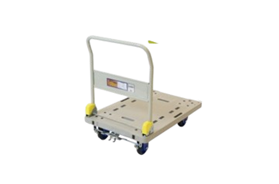 A low-noise resin trolley that eliminates the unpleasant metallic noise from the casters during movement. Equipped with a foot pedal brake.