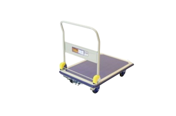 A low-noise steel trolley that eliminates the unpleasant metallic noise from the casters during movement. Equipped with a foot pedal brake.This trolley has a 300kg load capacityand a pedal-operated foot brake system.A safety feature is included in the handle folding mechanism to prevent finger pinching accidents.Reinforcement brackets are built into the base where the handle is mounted to prevent rattling during use.The platform is made of high-tensile steel, resulting in a low-noise steel trolley that is approximately 15% lighter while maintaining the same strength as conventional models.The tires are made of butadiene rubber, offering excellent cushioning, quietness, and weather resistance.Radial bearings are incorporated into the tire axle and front wheel rotation sections to reduce running noise (below 40 dB (decibels): internal standard test).The base is surrounded by cushioning rubber, and the loading surface is fitted with an anti-slip mat. Carrying and transporting goods.
