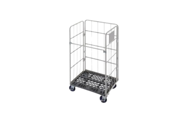 The loading surface is made of resin. The transport cart can be used directly as a display fixture, streamlining, improving the efficiency, and speed of unloading and stocking operations. Load capacity: 500 kg. Features 4 swivel wheels (2 with stoppers).