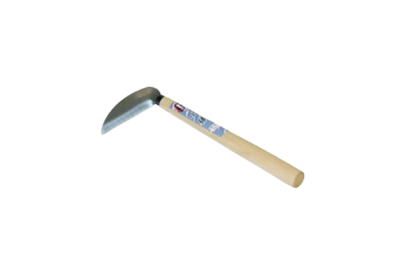 A small sickle for weeding, featuring a stainless steel blade for easy maintenance.