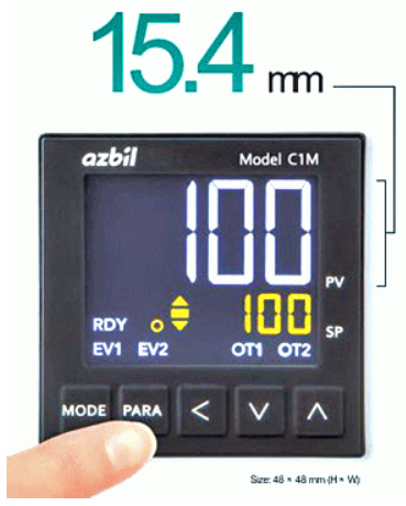 The large 15.4-mm display (about 1.4 times larger than the previous model) shows the process value (PV) in bright white.