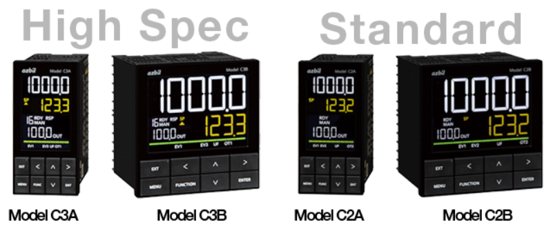 The lineup includes high-performance and high-accuracy controllers, models C3A/C3B, and easy-to-use standard controllers, models C2A/C2B.
