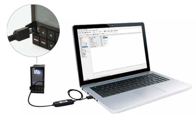 The model SLP-C1F_ _ _ smart loader package, which allows you to easily configure various settings, such as those for the PID simulator, is available free of charge. By connecting a PC to the controller using a USB loader cable (separately sold, model SLP-ULCJA0), you can read and write parameters from the PC using the loader.