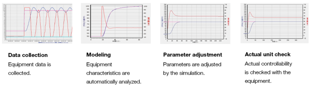 The PID simulator assists in reducing overshoot and hunting. It helps you to reduce the time needed for trial run adjustment and to improve takt time and the quality of equipment.