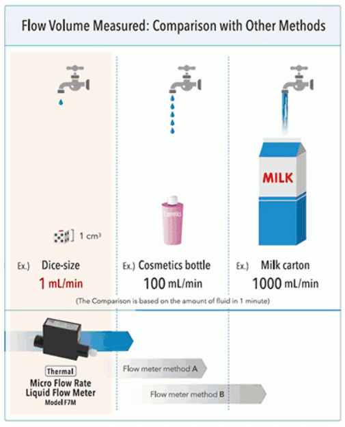 Measuring micro flow rates under 50 mL/min of liquid, which traditionally has been difficult, is now possible.