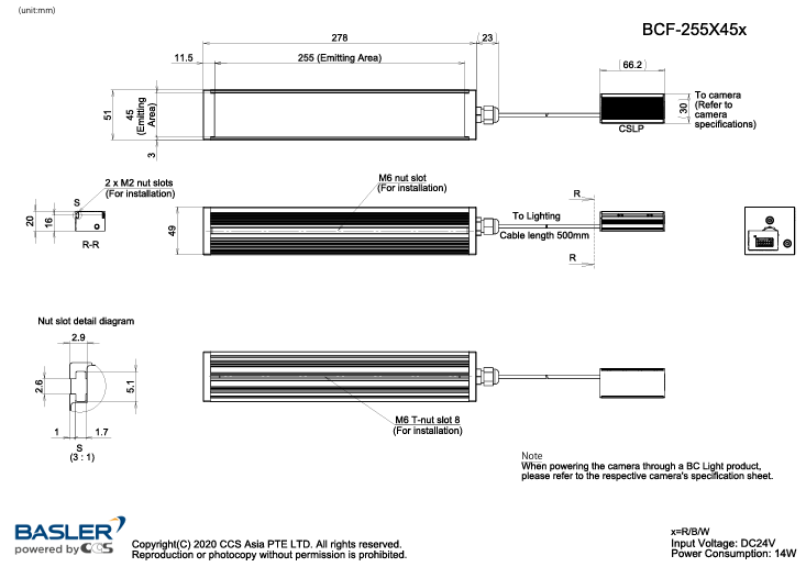 CCS BCF-255X45W / BCF-255X45R / BCF-255X45B Basler Camera Light Series