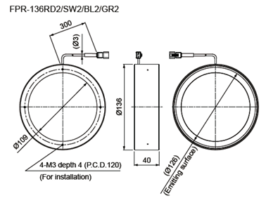- This Light Unit emits green light and has an outer diameter of 136 mm, an inner diameter of 109 mm, a height of 40 mm, and a light-emitting surface diameter of 126 mm.