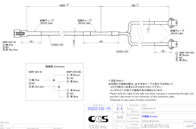 • It features a 3-pin SM connector and is a robot cable with excellent flexibility and durability.