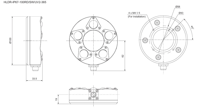 - This Light Unit emits white light and has an outer diameter of 100 mm, an inner diameter of 43 mm, and a height of 33.5 mm.