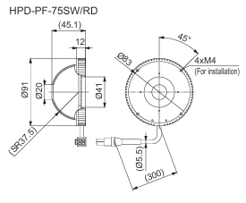 • This Light Unit emits white light and has an outer diameter of 91 mm, an inner diameter of 41 mm, and a height of 45.1 mm.
