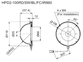 | Notes | CCS accepts special orders to change the shape of the camera-side opening to 30 mm square. The height of this special ordered Dome Light is 56.7 mm. |