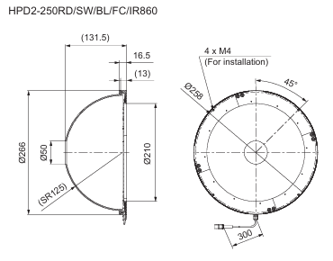 - This Light Unit emits infrared light and has an outer diameter of 266 mm, an inner diameter of 210 mm, and a height of 131.5 mm.