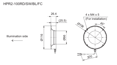 • This Light Unit emits RGB lights and has an outer diameter of 116 mm, an inner diameter of 66 mm, and a height of 26.4 mm.