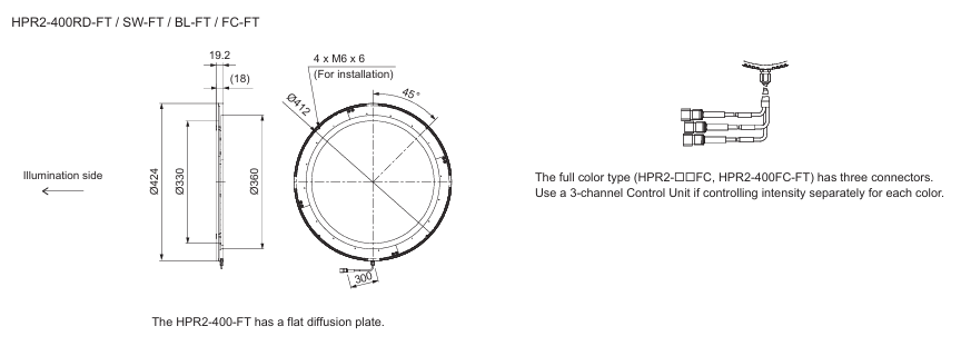 - This Light Unit emits RGB lights and has an outer diameter of 424 mm, an inner diameter of 330 mm, and a height of 19.2 mm.