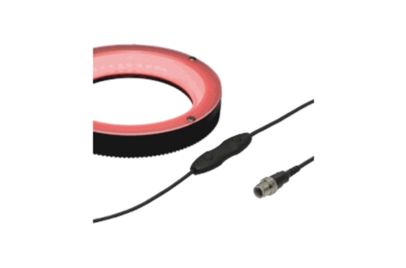 • This Light Unit with lntensity Control emits red light and has an outer diameter of 50 mm, an inner diameter of 18 mm, and a height of 18 mm.