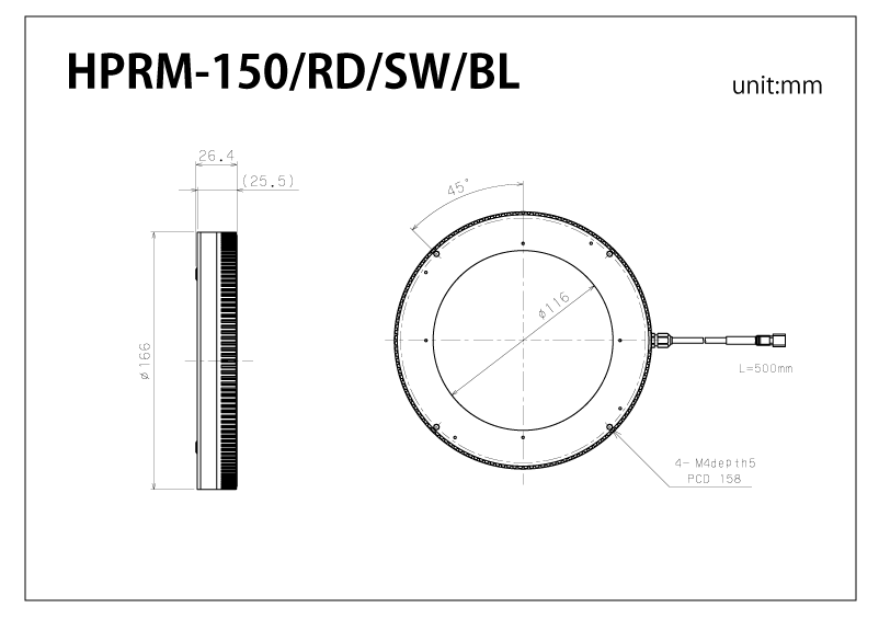 - This Light Unit emits white light and has an outer diameter of 166 mm, an inner diameter of 116 mm, and a height of 26.4 mm.