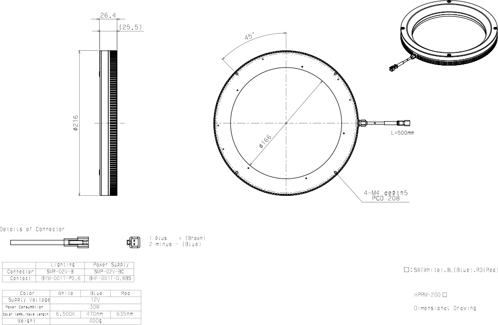 - This Light Unit emits white light and has an outer diameter of 216 mm, an inner diameter of 166 mm, and a height of 26.4 mm.
