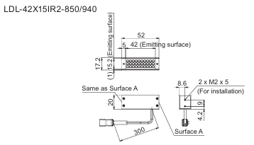 - This Light Unit adopts LEDs with a peak wavelength of 940 nm and measures 52 x 17.2 x 20 mm (width x depth x height).
