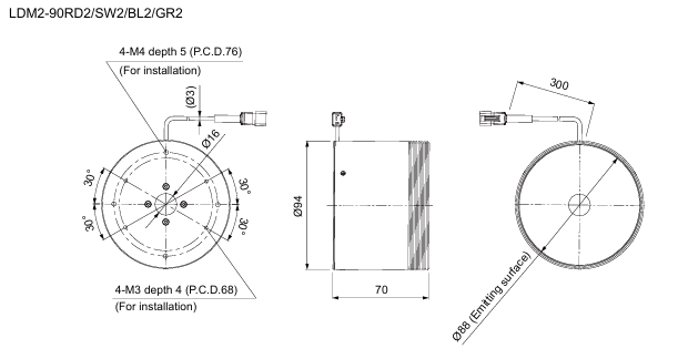 - This Light Unit emits green light and has an outer diameter of 94 mm, an inner diameter of 16 mm, a height of 70 mm and a light-emitting surface diameter of 88 mm.