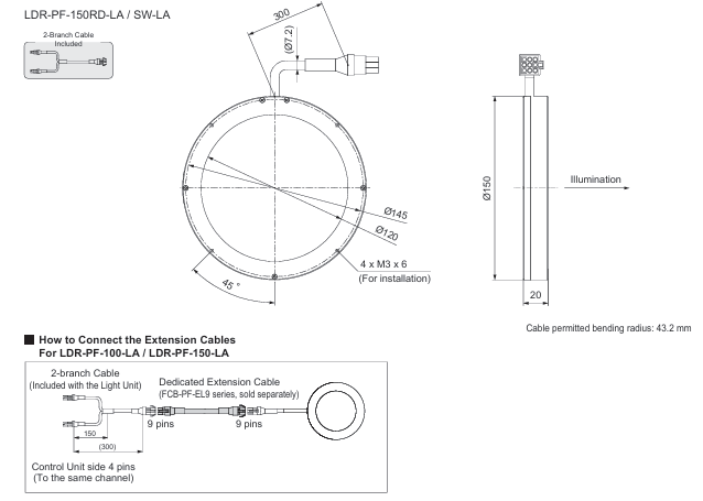 - This Light Unit emits white light and has an outer diameter of 150 mm, an inner diameter of 120 mm, and a height of 20 mm.
