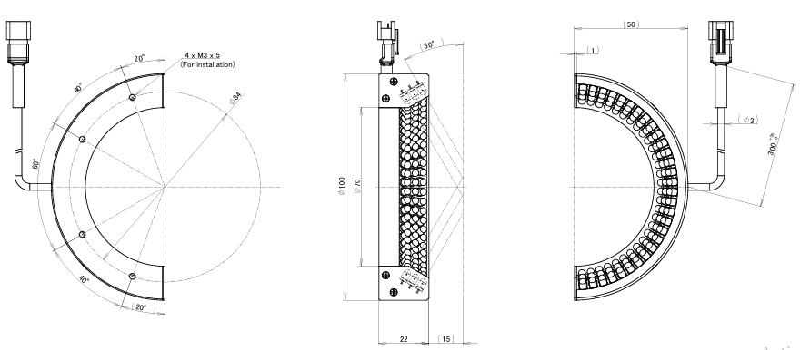 - LDR2-LA-HF Series half ring light with outer diameter 100 mm.