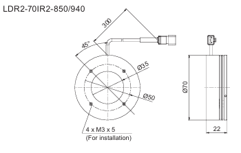 - This Light Unit adopts LEDs with a peak wavelength of 850 nm and has an outer diameter of 70 mm, an inner diameter of 35 mm, and a height of 22 mm.