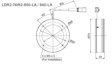 - This Light Unit adopts LEDs with a peak wavelength of 940 nm and has an outer diameter of 74 mm, an inner diameter of 48 mm, and a height of 19 mm.