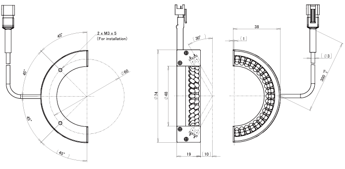 - LDR2-LA-HF Series half ring light with outer diameter 74 mm.