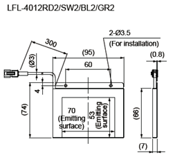 • The light-emitting surface measures 53 x 70 mm.