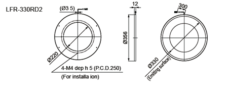 • This Light Unit emits red light and has an outer diameter of 356 mm, an inner diameter of 220 mm, a height of 12 mm, and a light-emitting surface diameter of 330 mm.
