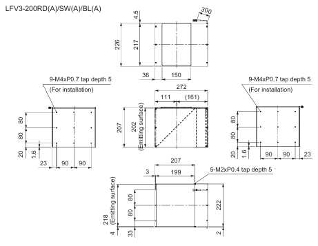 - This Light Unit emits blue light and measures 226 x 272 x 207 mm (width x depth x height). The light-emitting surface measures 218 x 202 mm.