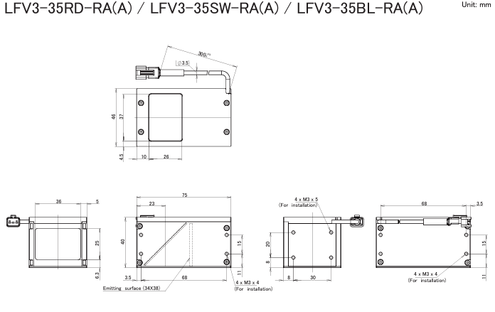 | Power consumption | LFV3-35RD-RA(A) : 3.1 W max. LFV3-35SW-RA(A) : 3.7 W max. LFV3-35BL-RA(A) : 3.1 W max. |
