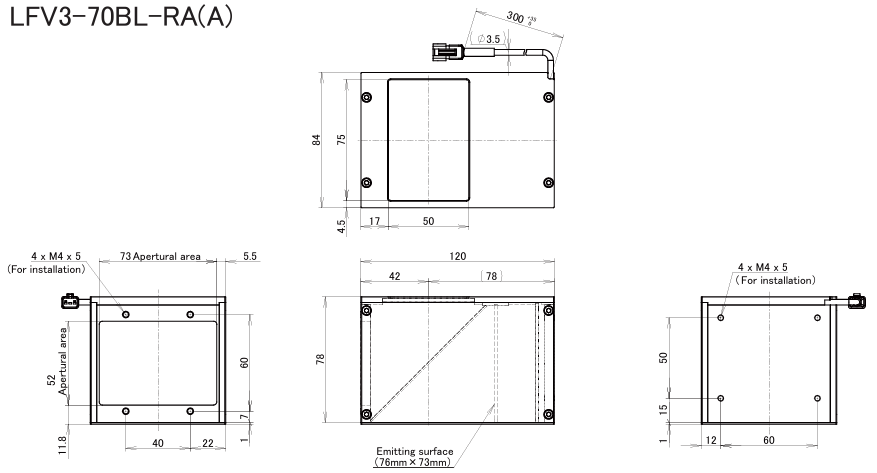 - 84mm (W) x 120mm (D) x 78mm (H) coaxial light with a light emitting surface of 76mm x 73mm.