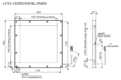 - It emits infrared light and measures 193 x 193 x 13.1 mm (width x depth x height).