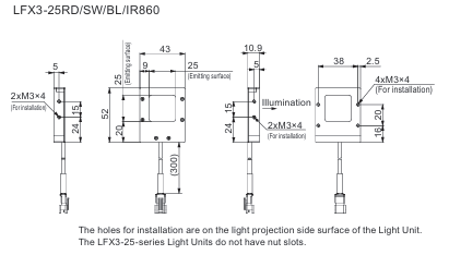 - The light-emitting surface measures 25 x 25 mm.
