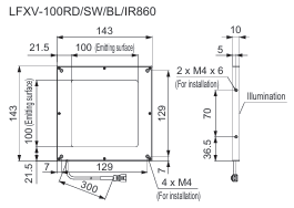 - This Light Unit emits infrared light and measures 143 x 143 x 10 mm (width x depth x height).