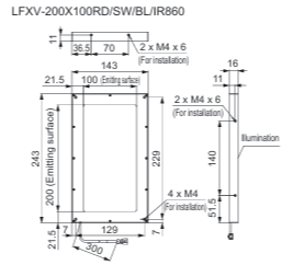 - This Light Unit emits blue light and measures 243 x 143 x 16 mm (width x depth x height).